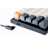 Компактная игровая механическая клавиатура на тихих переключателя SNK White, с прозрачными кейкапами и RGB подсветкой. Модель имеет 3 режима подключения: проводной, беспроводной по радио-каналу 2.4ГГц (с помощью USB-адаптера), а также подключение по Bluetooth. Также клавиатура имеет кнопку-регулятор для управления громкостью и подсветкой.