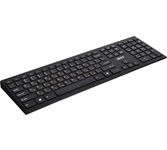 Интерфейс: USB. Тип беспроводного соединения клавиатуры: Радиоканал. Мультимедийные дополнительные клавиши: есть. Обычная/тонкая: тонкая(slim). Клавиатура с русскими буквами: ДА. Особенности: ножничный механизм нажатия. Дизайн клавиш: квадратные. Радиус действия клавиатуры: 10. Количество элементов питания: 2. Тип элементов питания: ААА. Цвет английских букв: белый. Цвет русских букв: оранжевый. Материал корпуса: пластик. Вес: 0.47. Тип соединения: беспроводная. Количество клавиш: 109. Габариты упаковки (ед) ДхШхВ: 0.46x0.14x0.031. Вес упаковки (ед): 0.6. Страна производитель: Китай. Комплектация: Беспроводная клавиатура USB-ресивер Батарейки ААА х 2 шт Краткое руководство пользователя. Гарантия: 12 мес.. Размеры клавиатуры (ШхВхТ): 435 х 25 х 125 мм. Цвет: и черный. Конструктив клавиатуры: низкопрофильная, островная. Конструктивные особенности: цифровой блок. Тип соединения: беспроводная. Цвет русских букв: оранжевый. Цвет английских букв: белый. Особенности: мультимедийная, тонкая(slim). Беспроводной интерф