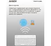 Интерфейс: USB. Тип беспроводного соединения клавиатуры: Bluetooth/Радиоканал. Мультимедийные дополнительные клавиши: есть. Обычная/тонкая: тонкая(slim). Клавиатура с русскими буквами: ДА. Особенности: A4Tech/Fstyler Bluetooth и перезаряжаемая клавиатура 2,4G. Режим двойного подключения (BT+ 2,4 ГГц). Сопряжение до 3 устройств (BTx2, 2.4Gx1). Расположение входов, совместимое с Mac/ПК/iOS/Android. Количество разъемов USB: 1xUSB TYPE-C. Дизайн клавиш: квадратные. Радиус действия клавиатуры: 10. Тип элементов питания: собственный Li-ion аккумулятор. Максимальное время работы: нет. Цвет английских букв: белый. Цвет русских букв: белый. Вес: 0.41. Тип соединения: беспроводная. Габариты упаковки (ед) ДхШхВ: 0.415x0.165x0.03. Вес упаковки (ед): 0.62. Гарантия: 12 мес.. Размеры клавиатуры (ШхВхТ): 395 х 138 х 27 мм. Цвет: и черный. Конструктивные особенности: разъемы USB, цифровой блок. Конструктив клавиатуры: островная. Особенности: мультимедийная, тонкая(slim). Тип соединения: беспроводная. Беспроводной интерфейс: