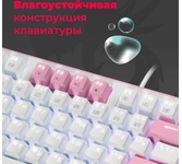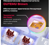 Ультракомпактная механическая клавиатура с кейкапами двух цветов и тактильными коричневыми свитчами. Основные достоинства модели: влагоустойчивая конструкция клавиатуры, регулируемая радужная подсветка и повышенная износостойкость благодаря технологии Double injection.