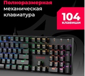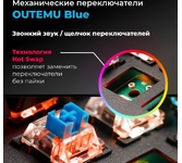 Механические переключатели OUTEMU Blue Программируемая RGB подсветка 18 режимов динамической подсветки Повышенная износостойкость - Ресурс нажатия клавиш - до 50 млн Позолоченный USB-коннектор - Позолоченное напыление обеспечивает лучшую проводимость, меньшее сопротивление и окисляемость Аппаратная блокировка клавиши WIN во время игры Распознает одновременное нажатие 104 клавиш Влагоустойчивая конструкция клавиатуры Регулируемая яркость подсветки Высокопрочный долговечный кабель Звонкий звук / щелчок переключателей Технология Hot Swap