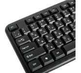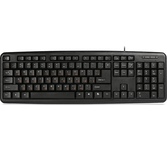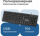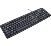 Клавиатура проводная, интерфейс подключения USB, количество клавиш - 104, прочная усиленная конструкция , полноразмерная раскладка клавиш, угол наклона регулируется с помощью ножек, длина кабеля - 1,8 м.