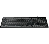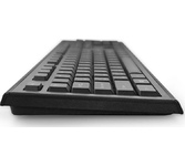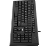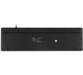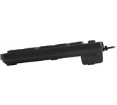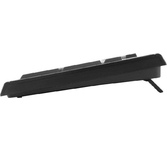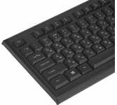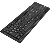 Клавиатура проводная, мембранная, интерфейс USB, количество клавиш - 104, покрытие устойчиво к возникновению царапин, не оставляет следов от прикосновения пальцев, влагозащитная, регулируемый угол наклона, длина кабеля - 1,5 м .