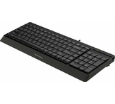 назначение: для настольного компьютера; интерфейс подключения: USB; тип клавиатуры: мембранная; цвет: черный; длина кабеля: 1.5 м; общее количество клавиш: 104; размеры: 454x29x154 мм, вес: 580 г