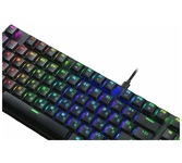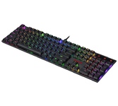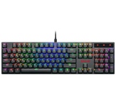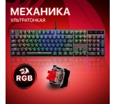 Распознает одновременное нажатие 104 клавиш Точная и тихая тактильная отдача обеспечивается низкопрофильными разделенными клавишами Программируемая RGB подсветка Влагоустойчивая конструкция клавиатуры Аппаратная блокировка клавиши WIN во время игры Механические переключатели OUTEMU Red