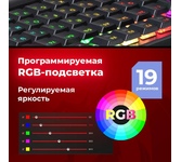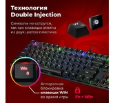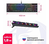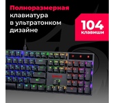 Повышенная износостойкость Позолоченный USB-коннектор - Позолоченное напыление обеспечивает лучшую проводимость, меньшее сопротивление и окисляемость Радужная подсветка Тихий ход клавиш обеспечивает практически бесшумную работу Технология Hot Swap Влагоустойчивая конструкция клавиатуры
