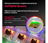 Стильная компактная механическая клавиатура на красных линейных переключателях OUTEMU. Несмотря на свои компактные размеры, клавиатура обладает всем необходимым функционалом для геймеров. Клавиатура оснащена дополнительным набором кейкапов для кастомизации.