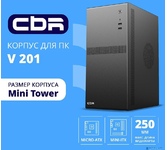 [Корпус] CBR Корпус mATX Minitower V201, без БП, 2*USB 2.0, HD Audio+Mic, Black [PCC-MATX-V201-WPSU]