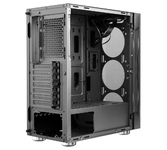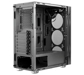 Формат шасси mATX/ATX черного цвета. Прочное шасси из стали с качественной завальцовкой. Разъем USB 3.0, три посадочных места для SSD. Боковая и передняя панель из закаленного тонированного стекла. Съемная корзина для HDD, кабельные каналы. Блок питания в отдельном воздуховоде, фильтр забора воздуха снизу. Возможность установки до 8-ми вентиляторов, фильтр забора воздуха сверху.