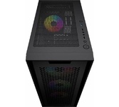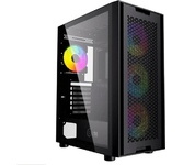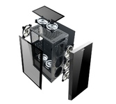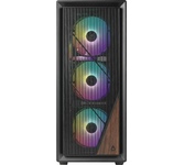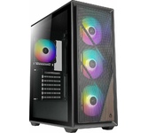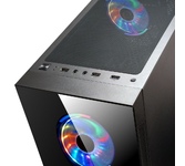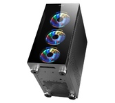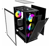 Формат шасси mATX/ATX черного цвета. Прочное шасси из стали с качественной завальцовкой. Разъем USB 3.0, три посадочных места для SSD. Боковая и передняя панель из тонированного закаленного стекла. 4*12 см RGB вентилятора в комплекте поставки. Блок питания в отдельном воздуховоде, фильтр забора воздуха снизу. Возможность установки до 8-ми вентиляторов, фильтр забора воздуха сверху.