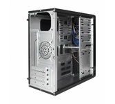 Miditower. Сталь (мм: 0.5). Тип блока питания: ATX. Форм-фактор материнской платы: ATX. Безынструментальный доступ к внутренним компонентам: Да. Количество внешних 5,25" отсеков: 1. Количество внутренних 3,5" отсеков: 2. Количество внутренних 2,5" отсеков: 2 (3 вместо 1 x 3.5"). Интерфейсы Порты ввода/вывода: Аудио 2 x 3.5мм (AC97). USB: 2. Расположение интерфейсов: В верхней части передней панели. Места для установки вентиляторов: На передней панели: 12 см x 2 или 14 см x 2. На задней панели: 12 см x 1. На боковой панели: 12 см x 1. Максимальная длина материнской платы, мм: 244. Максимальная высота вентилятора ЦП, мм: 155. Максимальная длина блока питания, мм: 210. Максимальная длина блока питания с приводом напротив, мм: 180. Максимальная длина видеокарты, мм: 320. Максимальная длина видеокарты с HDD напротив, мм: 250. Размеры: 195*415*385 мм.