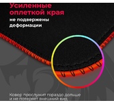 Размер 330х260х3 мм, Цвет чёрный, Материал термически обработанная ткань + натуральная резина, Поверхность Control, Компактный ковер на нескользящем резиновом основании. Текстурная поверхность типа Control для максимально точного позиционирования курсора мыши и 9 видов яркой RGB подсветки для самого интересного оформления игрового стола.