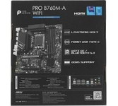 Гарантия: 36 мес. Ширина: 244, мм Глубина: 244, мм Вид поставки: RTL Серия продукции: Pro Комплект поставки: Материнская плата, кабель SATA, заглушка панели I/O, крепежный комплект, антенны Тип оперативной памяти: DDR5 Форм-фактор модуля памяти: DIMM Количество слотов памяти: 4, шт Разъем для процессора: LGA1700 Разъемов для установки процессора: 1, шт Максимальная TDP центрального процессора: 150, Вт Позиционирование использования: Desktop Производитель чипсета: Intel Чипсет: Intel B760 Частота системной