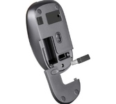 Мышь беспроводная, оптическая, интерфейс USB, количество кнопок - 3+колесо проктуртки, разрешение - 1600 dpi, частота: 2.4 ГГц, миниатюрный USB-приемник можно хранить в специальном отсеке в корпусе мыши, радиус действия: До 10 м.