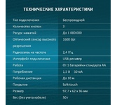 Мышь беспроводная, оптическая, интерфейс: USB, количество кнопок: 5 + колесо-кнопка, изменяемое разрешение: 800/1200/1600 dpi, дальность действия - до 10 м.
