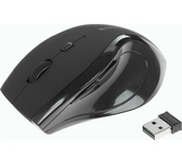 Мышь беспроводная, оптическая, сменное разрешение 800/1200/1600 dpi, количество кнопок: 5 +колесо прокрутки, интерфейс подключения USB, эргономичная форма, батарейка 1хАА (в комплекте), цвет - черный.