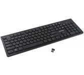 Вес: 420 г Радиус действия: до 10 м Интерфейс подключения: USB Количество „горячих“ клавиш: 12 Тип клавиатуры: Мембранная Цвет клавиатуры: черный Питание клавиатуры: 1 батарейка ААА Размер клавиатуры: 437*138*20 мм