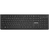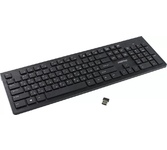Беспроводная клавиатура, компактная, 78 клавиш (включая 7 мультимедийных + цифровой блок), тихий отклик, раскладка: русская/английская. Питание: 2 х батарейки типа ААА (входят в комплект). Подключение: USB-ресивер, Plug & Play.