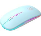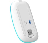 Беспроводная ультратонкая мышка с радужной подсветкой, встроенным аккумулятором и двумя режимами подключения: по радиоканалу 2,4ГГц или по Bluetooth. Модель имеет симметричную форму удобную для работы любой рукой.