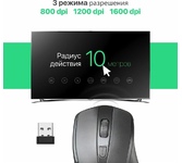 Мышь беспроводная, интерфейс подключения USB, тип сенсора -оптический, рабочая частота 2.4 ГГц, количество кнопок: 3 + колесо-кнопка, разрешение сменное - 800/1200/1600 dpi, питание - 2 хAAA (в комплекте).