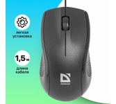Мышь проводная, оптическая, интерфейс подключения - USB, количество кнопок 2 + колесо-кнопка, разрешение - 1000 dpi, цвет - черный.