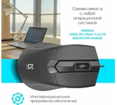 Мышь проводная, оптическая, интерфейс USB, 2 + колесо-кнопка, 1000 dpi, бесшумное нажатие кнопок, совместимость Windows 2000/XP/Vista/7/8/10 и выше, Mac OS X10, длина кабеля - 1,8 м.