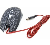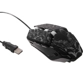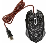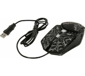 Мышь игровая, проводная, интерфейс подключения USB, количество кнопок - 5 + колесо-кнопка, изменяемое разрешение - 800/1200/1600/2400 dpi, переливающаяся подсветка, прочное прорезиненное покрытие, длина кабеля - 1,5 м.