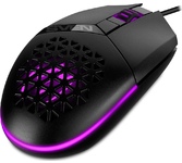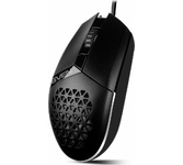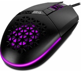 Проводная игровая мышь с четырьмя режимами разрешения и радужной подсветкой. Также мышь имеет прорезиненное колесо прокрутки, 2 дополнительные боковые кнопки и тефлоновые ножки.