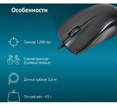Мышь, проводная, оптическая, интерфейс подключения - USB, разрешение сенсора 1200 dip. длина кабеля - 1.5 м.