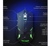 Мышь игровая, проводная, интерфейс подключения USB, количество кнопок - 5 + колесо-кнопка, разрешение изменяемое - 1000/1600/2400/3200 dpi, частота опроса - 500 Гц, широкое прорезиненное колесо прокрутки шириной 8 мм с подсветкой, долговечный кабель, длина кабеля - 1,8 м.