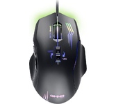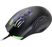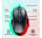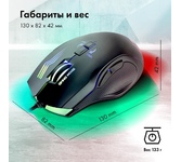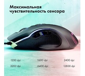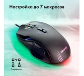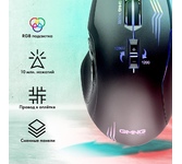 Мышь игровая, проводная, оптическая, интерфейс USB, 6 кнопок, колесо прокрутки, изменяемое разрешение - 1200/1600/2400/3200 dpi,2 дополнительные боковые кнопки, ферритовый фильтр помех, емкость аккумулятора - 500 мА ·ч, радужная подсветка, 5 настраиваемых кнопок, эргономичная форма обеспечивает удобный захват, бесшумные щелчки, тефлоновые ножки, длина кабеля - 1,2 м.