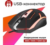 Мышь проводная, оптическая, количество кнопок - 3+колесо прокрутки, интерфейс подключения - USB, разрешение 1000 dpi, длина кабеля - 1,8 м.