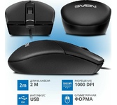 Мышь проводная, оптическая, интерфейс подключения USB, количество кнопок - 3, колесо прокрутки, разрешение - 1000 dpi, длина кабеля - 1,8 м.