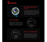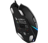 Мышь игровая, проводная, интерфейс USB 3.0, тип подсветки - RGB, количество кнопок - 9, колесо прокрутки, изменяемое разрешение - 1000/2000/3000/4000/5000 dpi, металлические ножки, специальное покрытие корпуса - soft rubber grips на боковых поверхностях, частота опроса: 125 – 1000 Гц/сек., длина кабеля - 1,8 м,