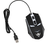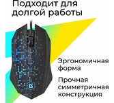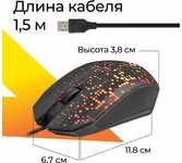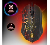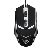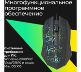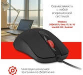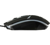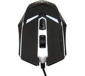 Мышь игровая, проводная, оптическая, интерфейс USB, 5 кнопок, колесо прокрутки, изменяемое разрешение 800/1200/1600 dpi,материал корпуса - матовый черный пластик, верхняя панель с кнопками - пластик софт-тач, вставки из полупрозрачного светлого пластика, изменяемая подсветка, длина кабеля - 1,5 м.