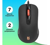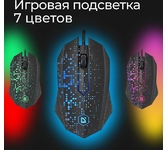 Мышь проводная, интерфейс подключения USB, тип сенсора оптический, количество кнопок 2 + колесо-кнопка, разрешение - 1000 dpi, 7 цветов подсветки, покрытие Soft Rubber Skin, длина кабеля 1.25 м