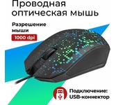 Мышь проводная, оптическая, количество кнопок - 2 кнопки + кнопка-колесо, изменяемое разрешение - 800/1200/1600 dpi, интерфейс подключения - USB, длина кабеля - 1,2 м.