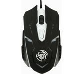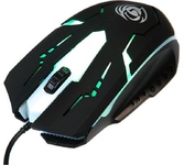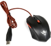 Мышь проводная, игровая, интерфейс USB количество клавиш - 4, колесо прокрутки, изменяемое разрешение - 800/1200/1600 dpi, мерцающая LED подсветка. длина кабеля - 1,5 м.