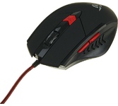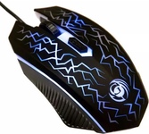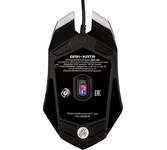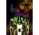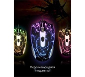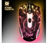 Мышь игровая, проводная, оптическая, интерфейс USB, изменяемое разрешение - 800/1200/1600 dpi, цветная подсветка, количество кнопок - 4+ролик, покрытие Soft-touch на панели кнопок, длина кабеля - 1,5 м.
