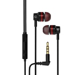 Проводная внутриканальная гарнитура с мощными басами и премиум звуком в металлическом корпусе, встроенный микрофон, кнопка вызова, L-образный разъем mini jack 3.5 mm , диапазон воспроизводимых частот 20Гц - 20кГц; макс. сопротивление 32 ОМ, чувствительность: 101дБ, длина провода 1,2м, цвет черно-красный, в комплекте дополнительные сменные амбушюры.