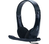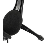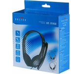 Удобная компьютерная гарнитура с гибким микрофоном, мягкими амбушюрами и регулятором громкости.
