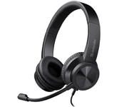 Легкая компьютерная гарнитура с регулируемым оголовьем, мягкими амбушюрами и регулятором громкости.