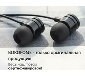 Borofone – это универсальные проводные наушники, их можно использовать для прослушивания музыки, просмотра видео и разговоров по телефону. С помощью регулятора на проводе вы можете принять звонок, поставить на паузу или переключить музыку, не доставая телефон из кармана. Встроенный микрофон позволяет говорить по телефону и обмениваться голосовыми сообщениями. Наушники очень удобно сидят в ухе и не приносят дискомфорт. Длина кабеля: 1,2 м. вес: 13 г. Выполнены в черном и белом цветах.
