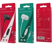 Borofone BM36 - отличные наушники в стильном дизайне. Благодаря наличию технологии подавления эха и шумов даже в шумной обстановке будет обеспечена замечательная слышимость. Качественные комплектующие позволяют добиться высокого качества звучания даже при длительном проигрывании музыки. Микрофон обладает высокой чувствительностью и может уловить даже шёпот. Мягкие эргономичные силиконовые амбушюры плотно приникают к поверхности уха. Получайте удовольствие от звучания без посторонних звуков. Кнопка управления удобно расположены на кабеле, вам не придется доставать ваш гаджет из сумочки или кармана.