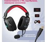 Совместимость с ПК, ноутбуками, игровыми консолями, смартфонами, планшетами Виртуальный объемный звук 7.1 - Система обработки звука имитирует работу 7 колонок и сабвуфера, расположенных с разных сторон, создавая точную среду объемного звучания и позволяя полностью погрузиться в мир игры RGB подсветка - Специальная кнопка для включения/выключения подсветки 7 цветов подсветки 5 режимов подсветки Эргономичный дизайн Кнопка выключения микрофона - Просто отключите микрофон, если не хотите, чтобы собеседник или партнеры по игре вас слышали Регулятор громкости звука Микрофон с шумоподавлением - Выведите коммуникацию с партнерами по игре на новый уровень Мягкие комфортные амбушюры из протеиновой пены - Мягкие и удобные амбушюры обеспечивают комфорт на протяжении длительного времени