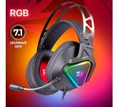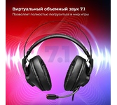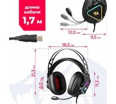 Тип гарнитуры: многоканальная 7.1. Тип, акустический: закрытые. Тип конструкции: мониторные. Тип соединения гарнитуры: проводные USB. Импеданс: 32. Чувствительность динамика: 110. Длина шнура: 2.1. Крепление микрофона: всенаправленный. Особенности: Игровая гарнитура с поддержкой виртуального звука 7.1. Съемный микрофон. Вкл/выкл микрофона, регулировка громкости, вкл/выкл подсветки - на на кабеле. Удобное крепление наушников обеспечивает поворот чашек для большего комфорта. Мягкие амушюры с хорошей звукоизоляцией. Длинный провод.. Крепление: оголовье. Регулятор громкости: есть. Тип регулятора громкости: на проводе. Диаметр головок излучателей: 50. Материал магнита: Nd. Режим объемного звучания: Виртуальный объемный звук 7.1. Выключение микрофона: есть. Тип коннектора: прямой. Для геймеров: да. Вес (без шнура): 355. Съемный микрофон: есть. Подсветка: есть. Материал амбушюров: ткань. Цвет подсветки: RGB. Коннектор (гарнитура): USB. Габариты упаковки (ед) ДхШхВ: 0.18x0.11x0.24. Вес упаковки (ед): 0.6. Страна прои