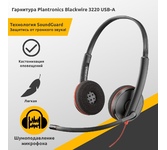 Наушники POLY Гарнитура Blackwire 3220, для компьютера, накладные, проводные, черный [8x228a6]