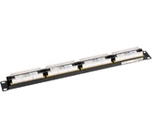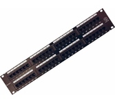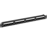 Патч-панель (коммутационная панель) используется при построении структурированных кабельных сетей. Служит для быстрой и удобной коммутации кабелей между активным сетевым оборудованием и рабочими местами (станционной и абонентской частями). Позволяет организовать пространство внутри информационных шкафов и упорядочить кабельную разводку. На передней стороне расположены 24 неэкранированных порта RJ-45 для кабелей категории 6. На тыльной стороне находятся IDC-разъемы, предназначенные для фиксированного соединения с кабелями. Все разъемы пронумерованы, предусмотрена цветовая и цифровая индикация. Патч-панель монтируется в стойку 19''.