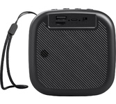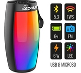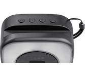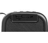 ПОРТАТИВНАЯ АКУСТИЧЕСКАЯ СИСТЕМА Номинальная выходная мощность (RMS): 6 Вт Пиковая выходная мощность (PMPO): 10 Вт Динамик: 2” Bluetooth 5.0 Поддерживаемые аудиоформаты: MP3, WAV Функция True Wireless Stereo (TWS) Цифровой FM-тюнер (87.5-108 МГц) Воспроизведение с USB 2.0 и microSD карты Встроенная аккумуляторная батарея: 300 мАч Время работы от аккумулятора до 6 часов* Многоцветная LED подсветка Размеры устройства: 155 х 62 х 62 мм Цвет: черный