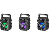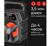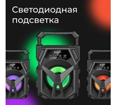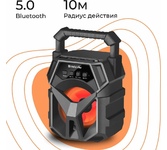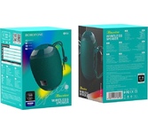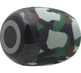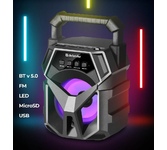 Портативная колонка, Bluetooth 5.0, мощность (RMS) - 5 Вт, диапазон частот 100–16000 Гц, соотношение сигнал/шум - 85 дБ, время работы от аккумулятора 4 час, интерфейс AUX-аудиовход, Питание USB, 5 В , Li-Ion аккумулятор, емкость аккумулятора - 1200 мА·ч, встроенный FM-приемник, радиочастотный диапазон 87.5–108.0 МГц, поддержка USB-накопителей и MicroSD-карт, светодиодная подсветка.